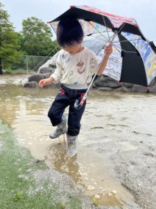「水たまりに入っちゃおう!」「花がぬれてるよ!」